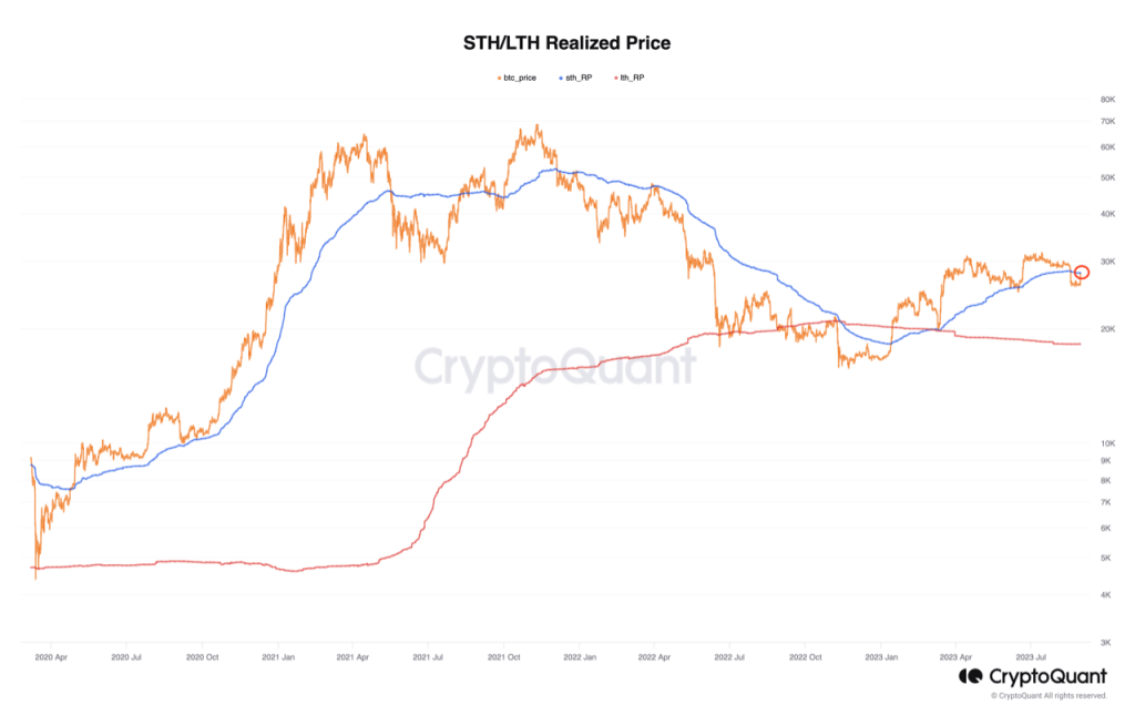 As pointed out by an analyst in a CryptoQuant post, the BTC price has recently neared the short-term holders’ realized price. The “realized price” is a metric that basically represents the cost basis (that is, the buying price) of the average investor in the Bitcoin market.