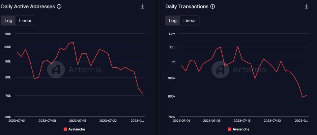 As per Artemis’ data, AVAX’s daily active users and daily transactions declined, suggesting less usage of the blockchain.