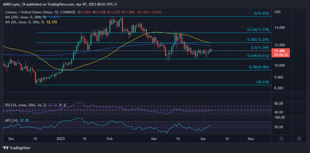 The demand for ATOM should go up as more blockchains get connected to the Cosmos hub. This is because the coin is necessary for projects looking to join the Cosmos ecosystem. As far as ATOM’s performance is concerned, at press time, the token was still trading at a slight premium as compared to its December 2022 lows. However, it delivered sideways action for the last 12 days or so.