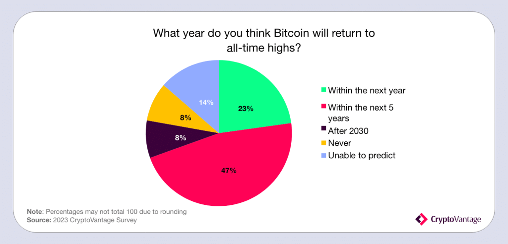 Surprisingly, there were a handful of enthusiasts, about 23%, who believed that the king coin will hit the ATH in 2023 itself. While the optimism was noteworthy, it looked far-fetched given the momentum of the market.