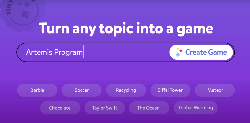A text prompt being entered into the TinyTap AI game generator. Source: TinyTap