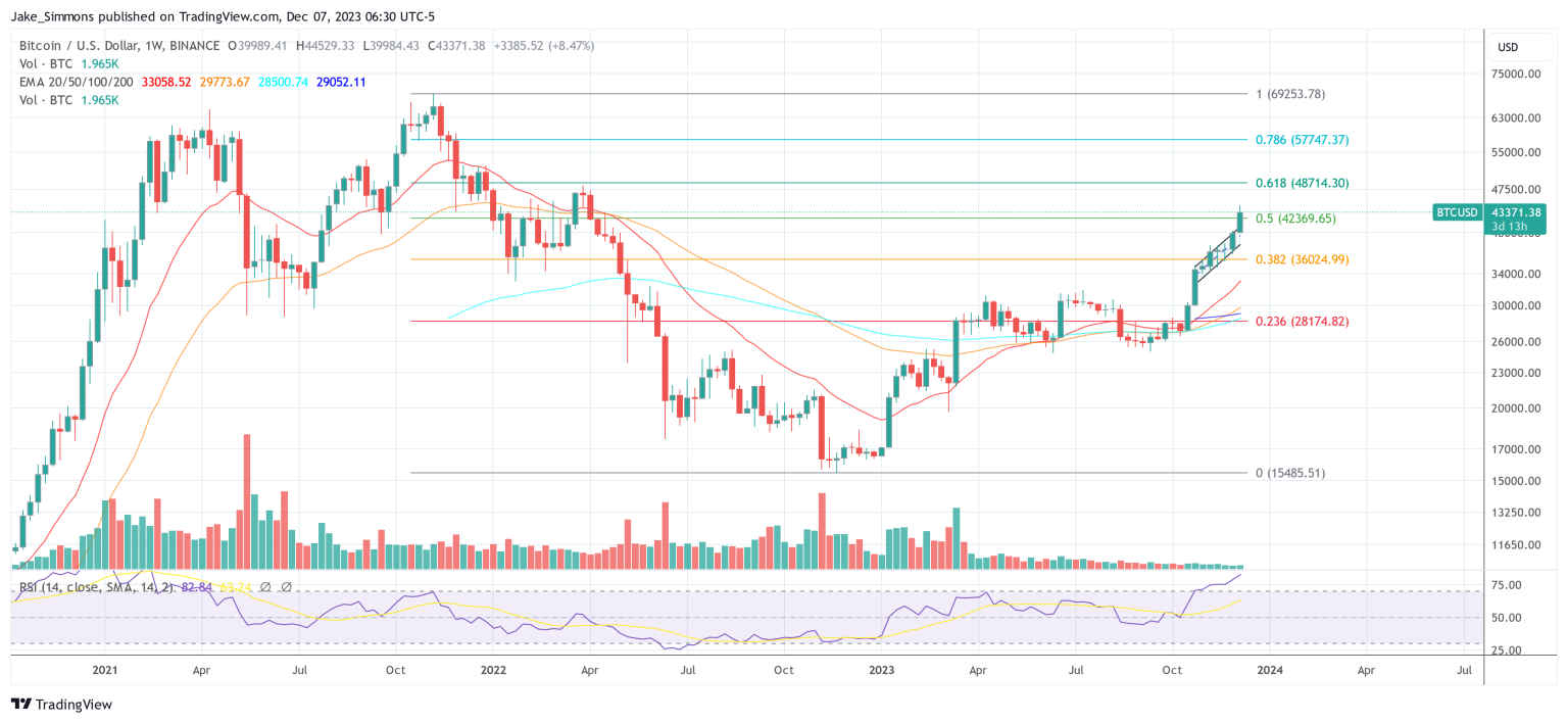 A pivotal aspect of the report is the anticipated approval of the first spot Bitcoin Exchange-Traded Fund (ETF) in the United States. Eric Balchunas, the senior Bloomberg ETF analyst, is quoted saying, “There is a 90% chance of an approval by January 10, 2024.” This development is seen as a significant driver for Bitcoin’s price increase.
