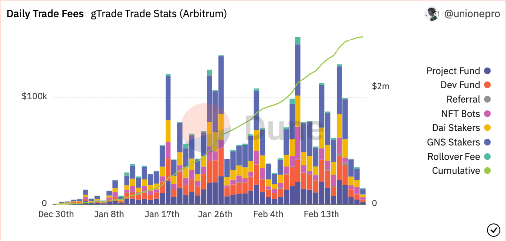 Gains Network was initially deployed on Polygon network. However, its growth trajectory witnessed a noteworthy uptick following its deployment on 31 December 2022, on Arbitrum, an Optimistic Rollup solutions provider on Ethereum.