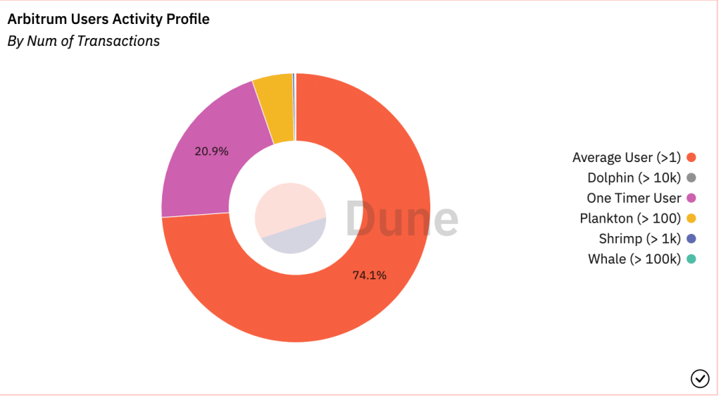 The spike in transactions could be attributed to the growing number of accumulated users on the protocol. Out of these users, 74.1% made more than one transaction, while 20.9% were one-time users.