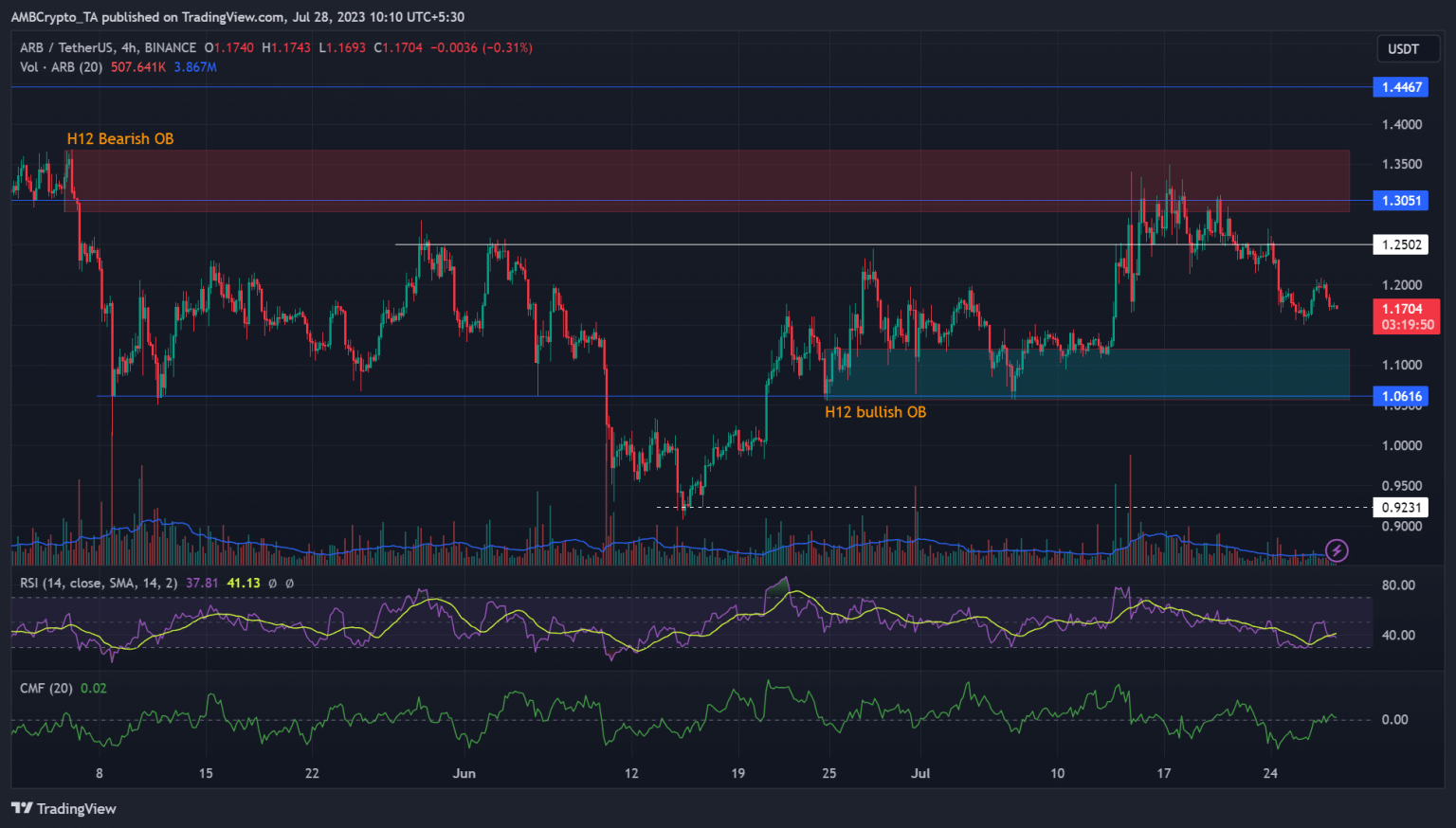 Also, Arbitrum’s demand zone is a confluence area with an H12 bullish order block (OB) of $1.06 – $1.12 (cyan). So, bulls are expected to defend the demand zone, so it is a crucial interest level, especially for discounted buying opportunities, targeting the roadblock and H12 bearish OB of $1.29 – $1.37 (red).