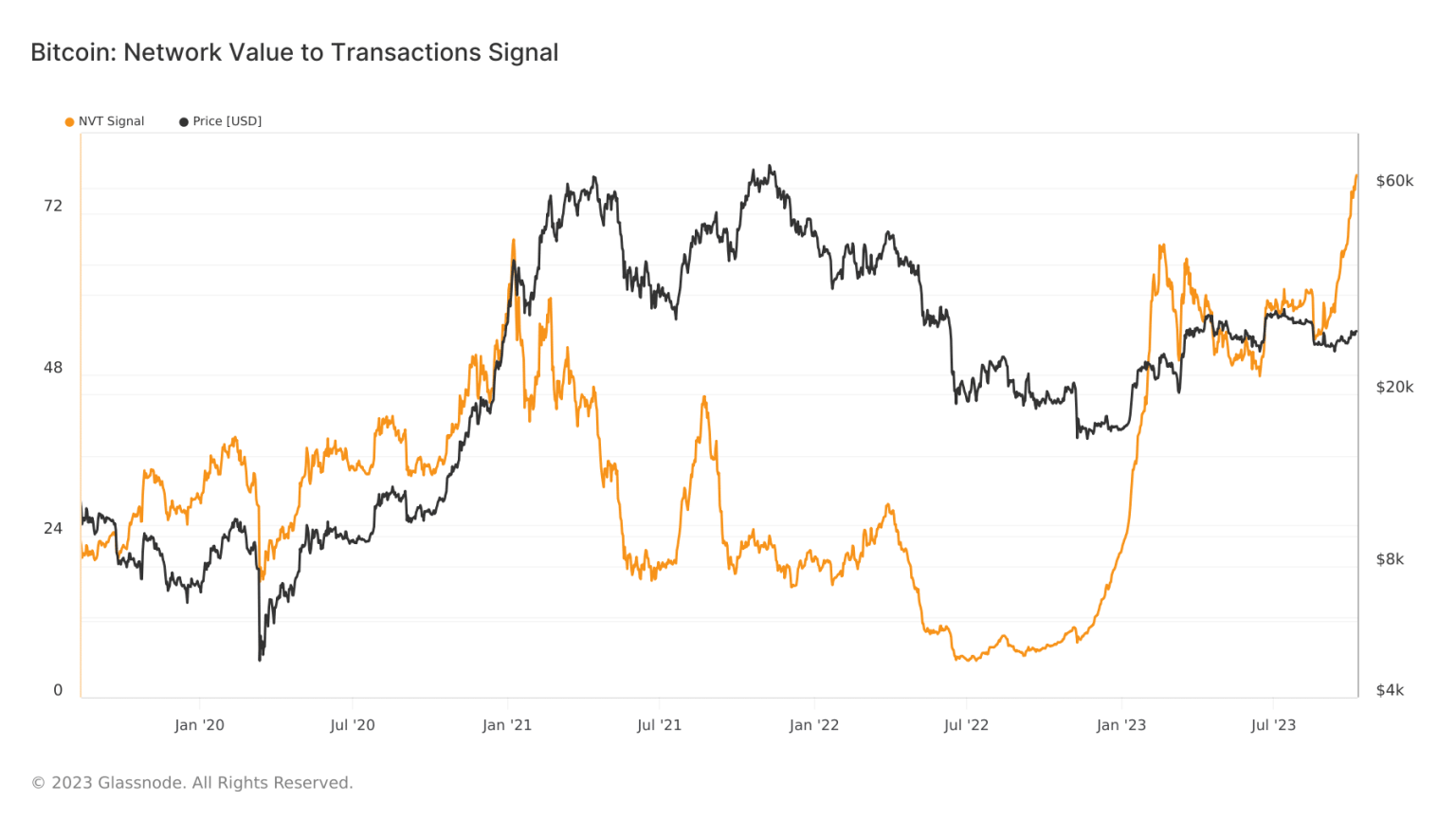 However, recent spikes in NVT ratios hint that Bitcoin’s value is now moving independently of transactional utility, hinting at its growing role as a store of value. Earlier, the NVT signal always spiked ahead of a price uptick for BTC and fell ahead of a price plummet.