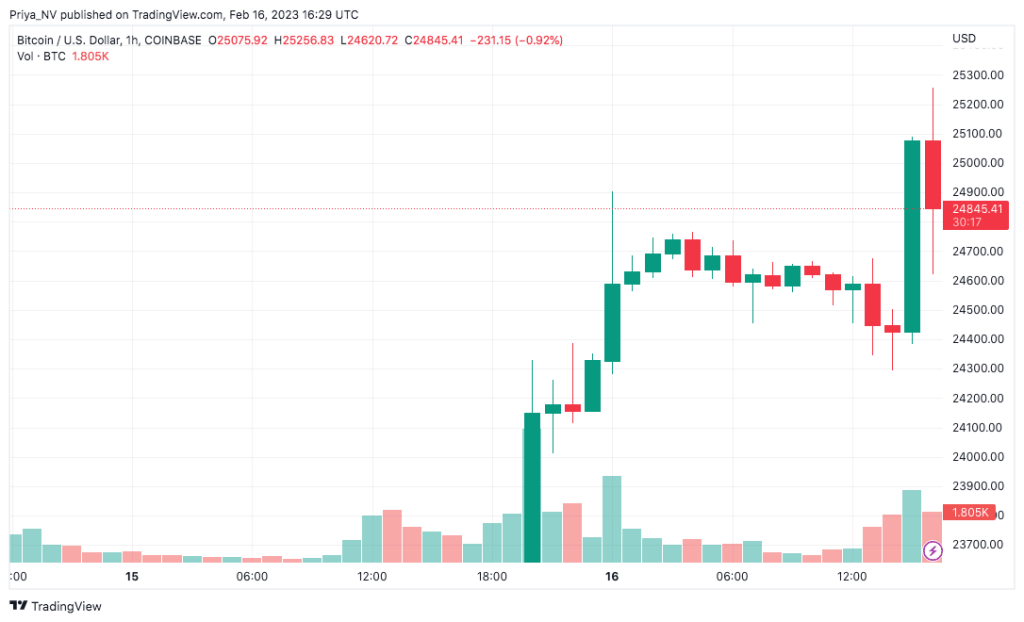 Bitcoin (BTC), the king coin, has broken another level within a span of 24 hours. The largest cryptocurrency by market cap breached the $25,000 mark, a day after the coin broke another key level. The coin reached a high of $25,256 on Coinbase, as per the data presented on Trading View. The coin’s price has retracted ever since it peaked at this level.