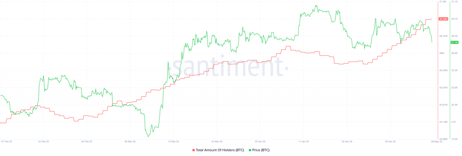 The overall support for Bitcoin [BTC] has been on the rise for quite some time. Ever since Bitcoin’s price rallied over the last few months, the sentiment around the king coin has mostly been positive.