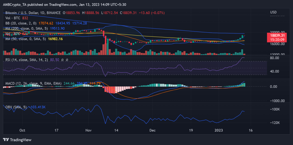 Bitcoin’s price rose to a range of $18,800 after a rebound that began while it was trading around the $15,000 mark. When BTC’s price move was examined on a daily timeframe, it became clear that the coin had appreciated by almost 11%.