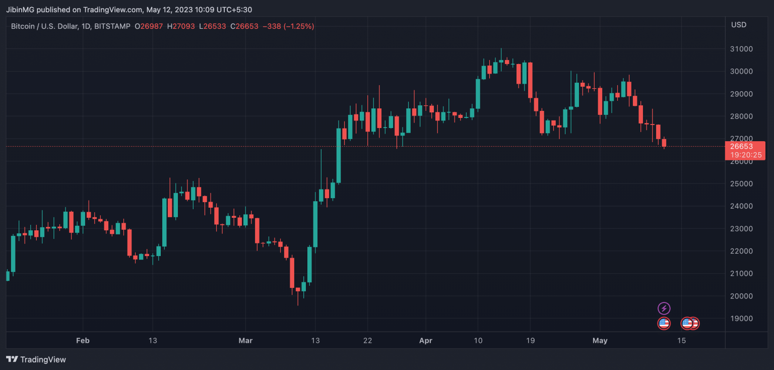 Stocks traded mixed in the equities markets as inflation came in slightly lower than expected, but remained well above the Federal Reserve’s 2% target. The Bitcoin market has recently shown considerable tenacity, with bulls successfully maintaining the price above the important $27,000 support level. However, that wasn’t the case at press time.