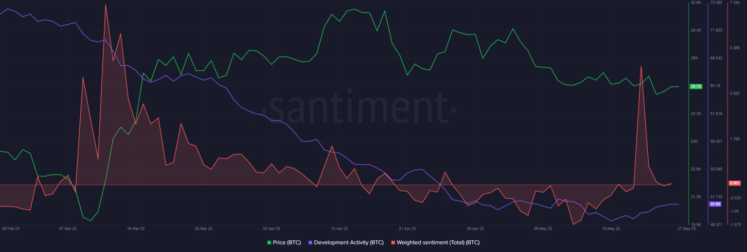 The daily active addresses reached a 3-week high on 26 May, as per Santiment, Moreover, the number of daily transactions also spiked.
