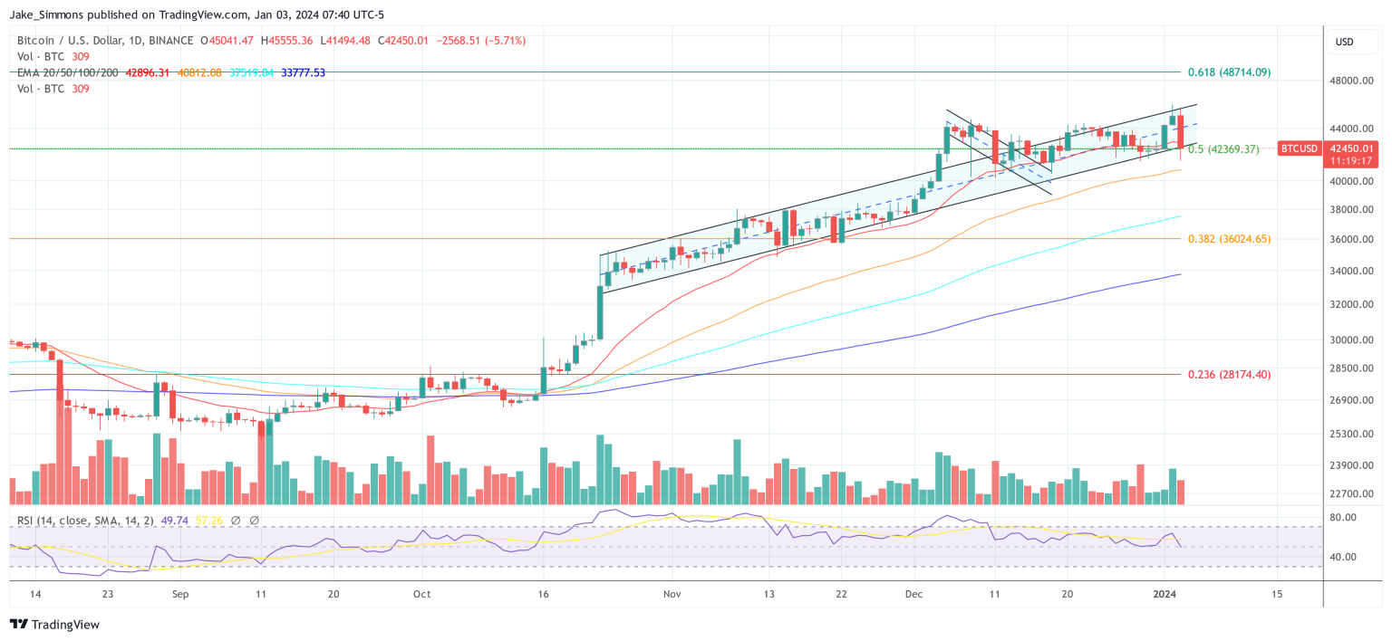 At press time, BTC had already recovered some of its losses and was trading at $42,450. This means that the price has once again returned to the upward trend channel in the 1-day chart that was established in mid-October last year.