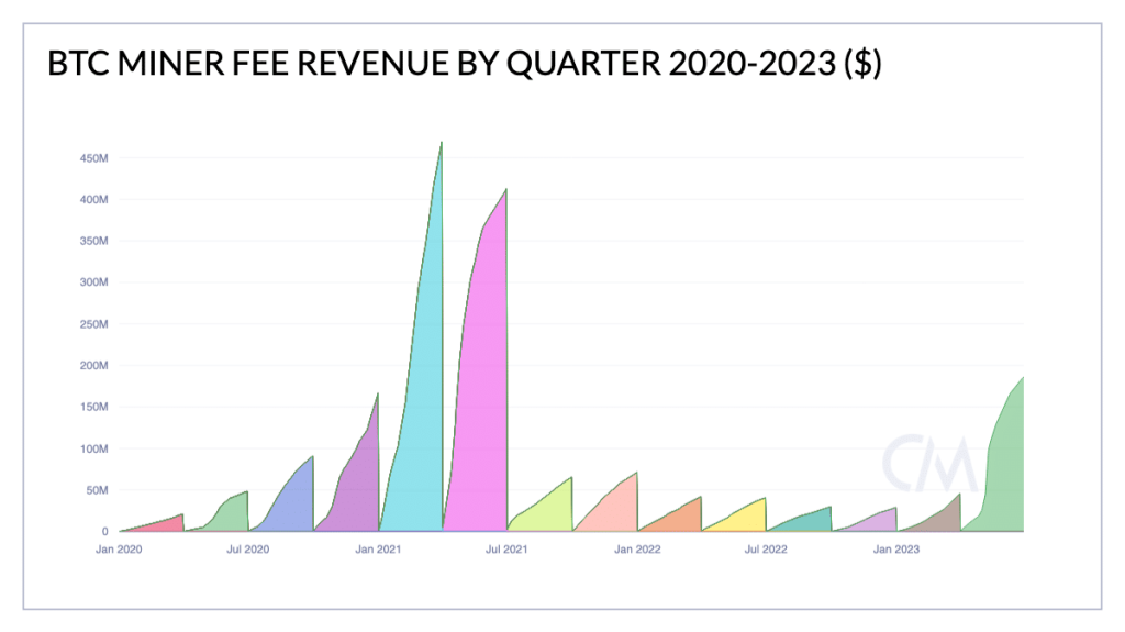Bitcoin [BTC] miners made $184 million from transaction fees in the second quarter of 2023. The amount is far more than what the miners made throughout 2022.