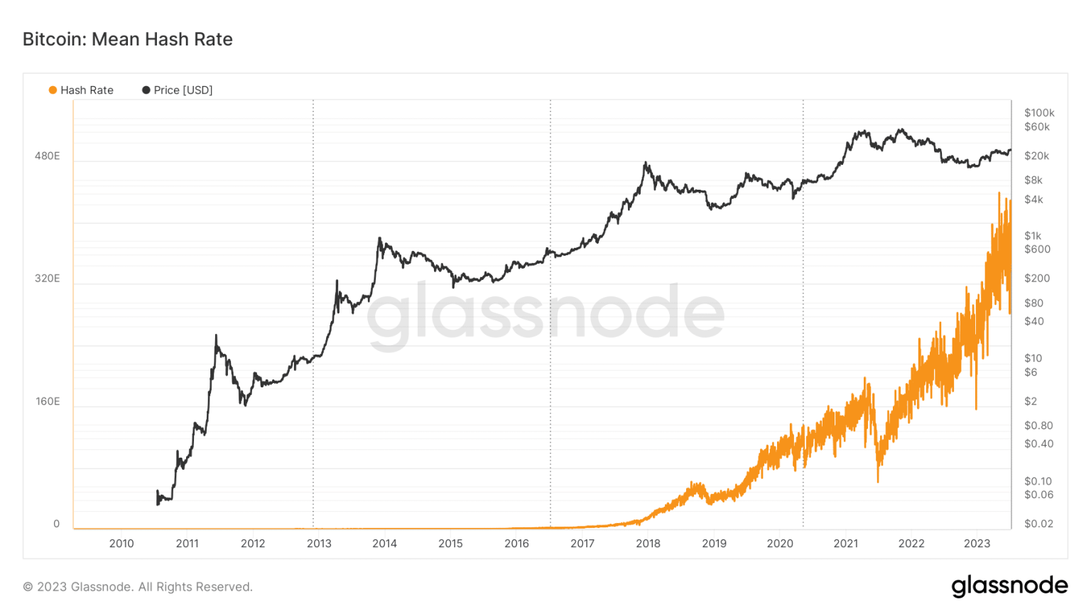 The intense debate around Bitcoin [BTC] mining has gone in tandem with the evolution of blockchain technology and cryptocurrencies. According to on-chain analytics firm Glassnode, the network’s hashrate has grown astronomically over the last five years, mirroring the sharp ascent in BTC’s value.