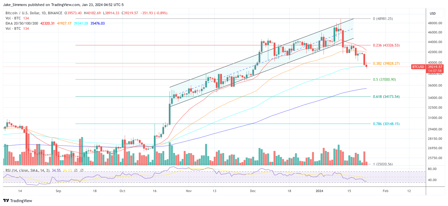 The Bitcoin price has plummeted below the $39,000 mark, the lowest level since December 2. This significant drop can be attributed to three main factors that have collectively contributed to the current market sentiment and price action.