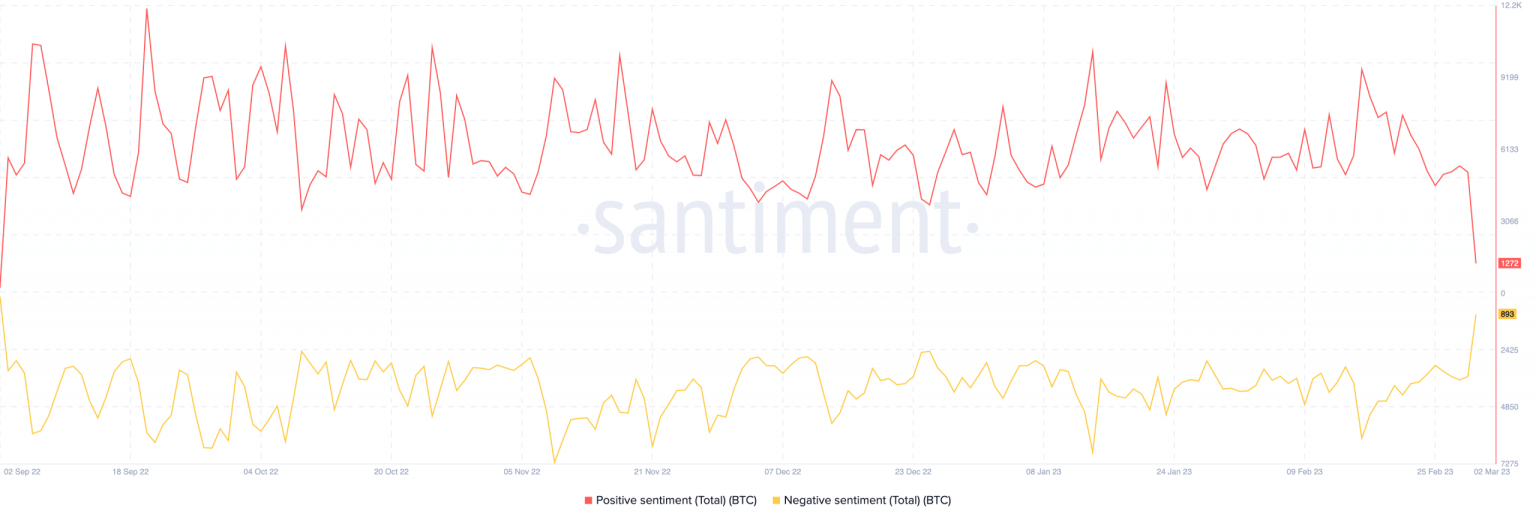 This decline means that BTC was already yielding to the impact of the top addresses’ exit. While the coin price still remained above $23,000, the viewpoint towards BTC was very utterly terrible. This was because the positive sentiment that hit a crest mid-last month, had decreased significantly. At press time, Santiment showed that the metric was 1245.