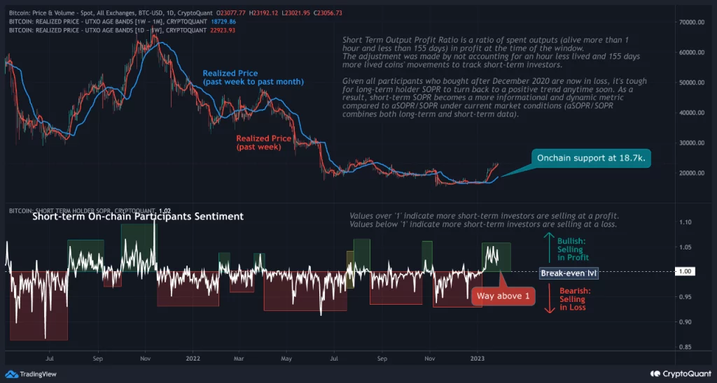 Further, CryptoQuant analyst Phi Deltalytics assessed BTC’s short-term Spent Output Profit Ratio (SOPR) and found that “sentiment from Bitcoin short-term on-chain participants has reached the greediest level since January 2021.” According to the analyst, the SOPR was positioned well above the bullish threshold of one, indicating an overly stretched market.