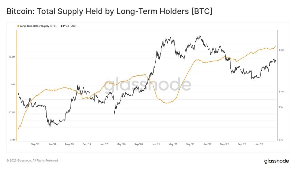 The above observation was indicated by glassnode’s data, which showcased that Bitcoin’s Total Supply held by Long-Term Holders continued to push toward new all-time highs.