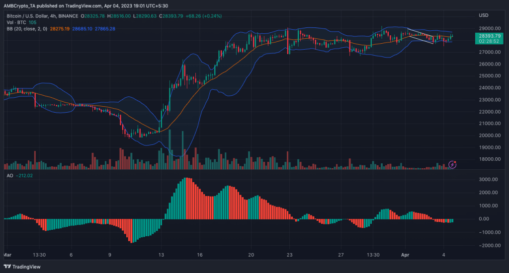 With so many factors at play, from macroeconomic conditions to global regulatory changes, Bitcoin [BTC] has opted to stick with consolidation in the last few days. Within this period, the king coin managed to fall below $28,000.