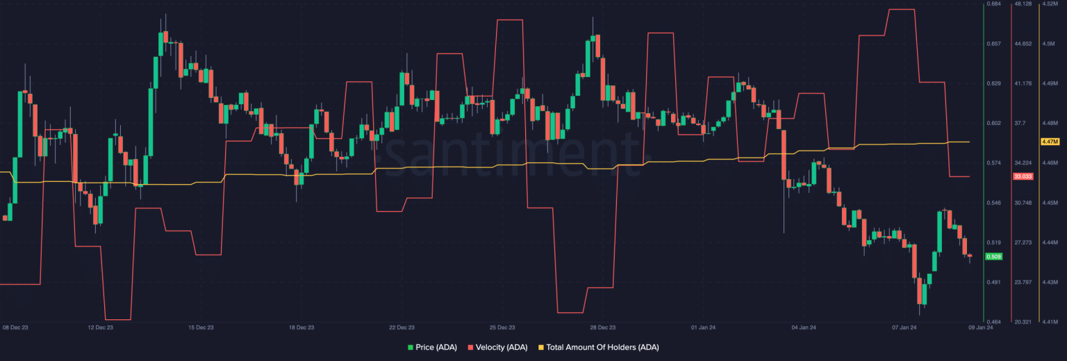 However, it’s essential to note that despite the surge in price and increased addresses, the velocity of ADA’s trading activity has experienced a decline. Investors should carefully consider this aspect when evaluating the sustainability of ADA’s current momentum.