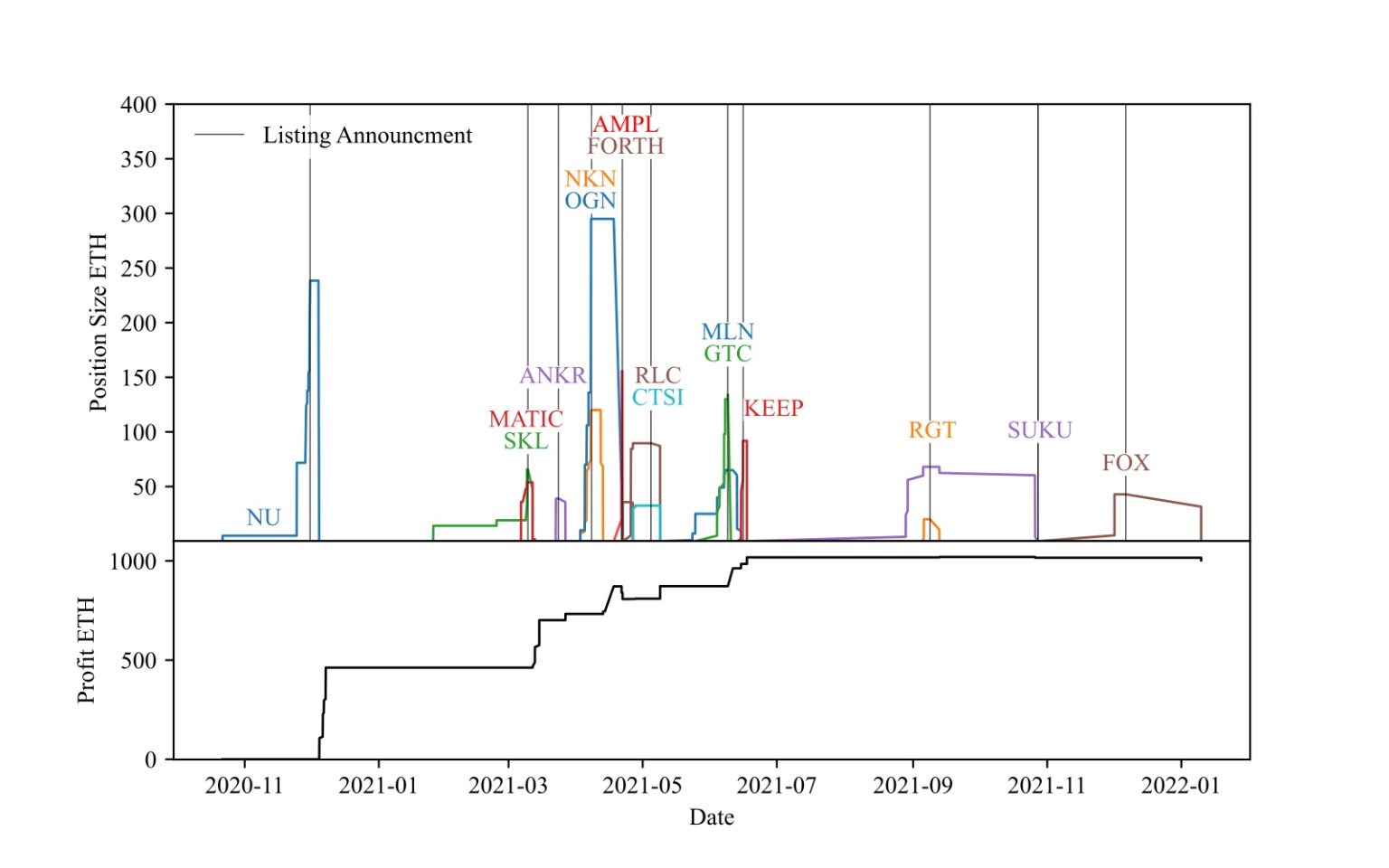 According to a study by Columbia Law School, a group of four linked wallets frequently bought cryptocurrency hours before formal listing announcements, which resulted in gains of $1.5 million. Before the formal listing announcement, the identified wallets bought the impacted tokens and stopped trading as soon as they sold their positions. The study found these digital wallets’ trade history to be precise, suggesting the owners had access to private information about cryptocurrencies scheduled for listing on exchanges.