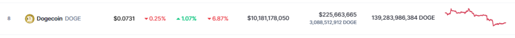 The current DOGE price of $0.0731 on CoinGecko suggests a mixed bag of fortunes, with a slight 1.07% rally in the past 24 hours and a slump of 6.8% over the past seven days.