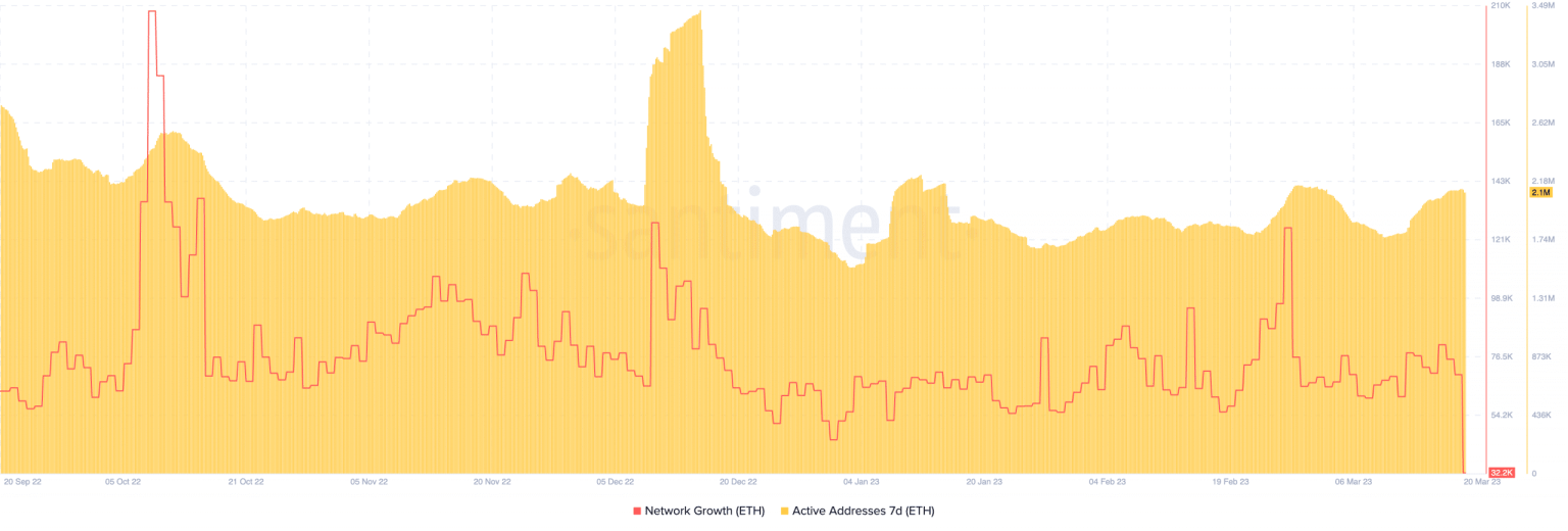 However, there is one part that could affect the ETH and might have gone unnoticed. But thankfully, Santiment mentioned it in its 20 March tweet. According to the on-chain analytic platform, Ethereum transaction fees fell below $2 as demand continued to heighten.