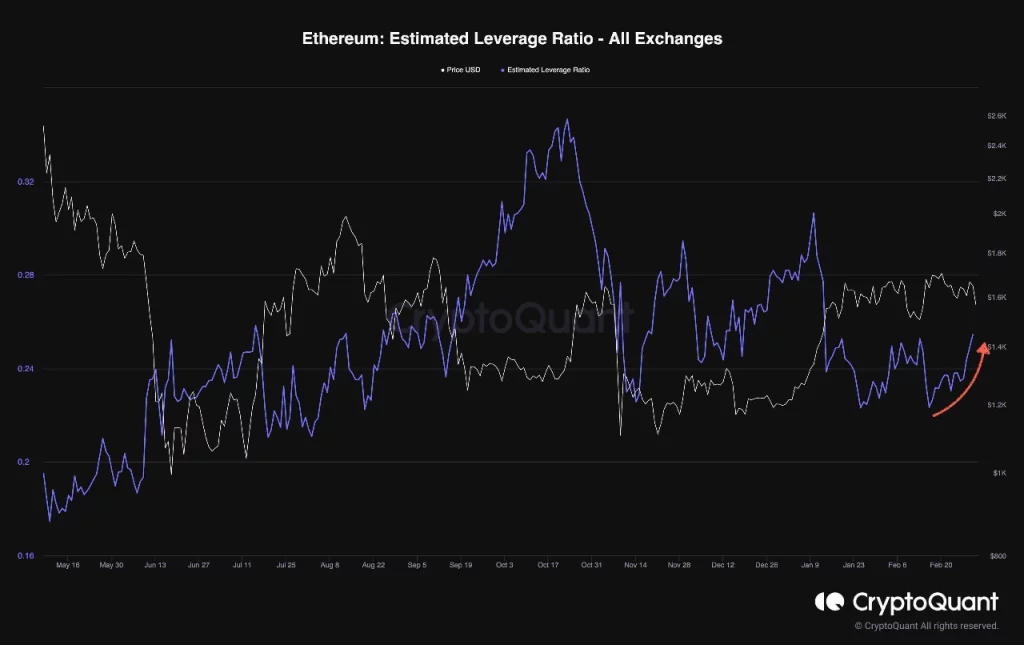 ETH is experiencing a surge in leverage trades following the volatility and demand slowdown since early February. A contrast to its performance in January, but recent observations suggest an increased risk of liquidations which may bring about a surge in volatility.