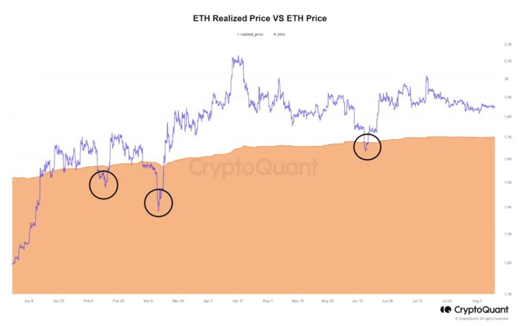 A CryproQuant analyst and author recently posted an analysis that highlighted a metric to mention when investors should stockpile ETH. As per the analysis, Ethereum’s realized price hovered between $1.500 and $1,600 from January to August 2023. This is the average “break-even” price at which Ethereum holders make no money or lose money.