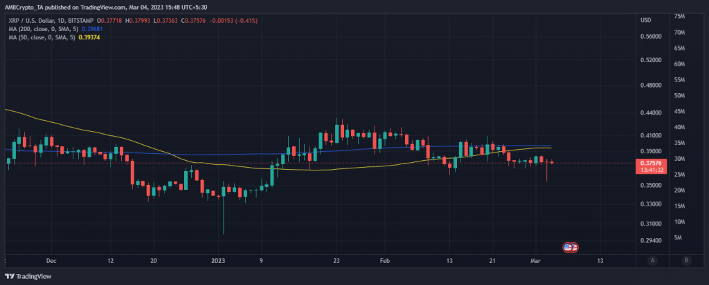 The lawsuit has undoubtedly hindered Ripple’s progress, as well as deterred investors. The impact is evident in XRP’s performance. It is one of the cryptocurrencies that has seen low demand and low trading activity. To put it into perspective, XRP has been hovering near the $0.37 price range since 25 February.