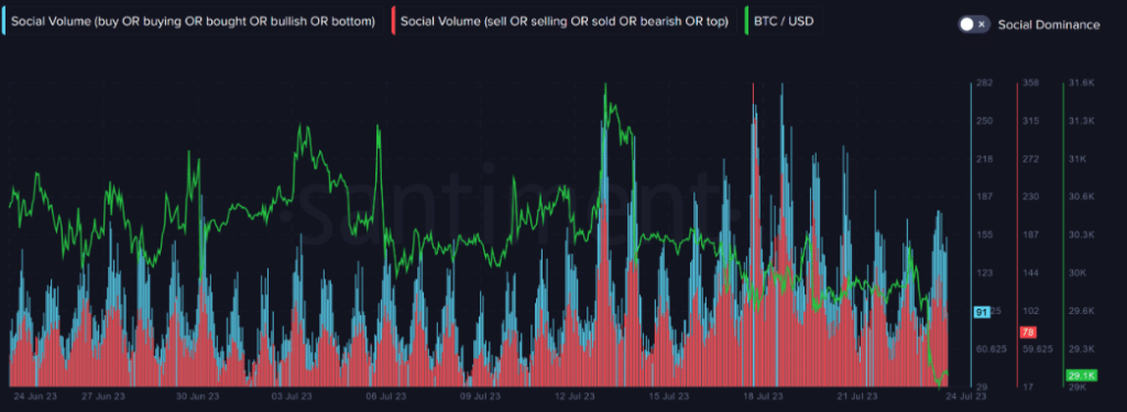 Interestingly, Santiment’s 25 July analysis considered which flank traders are more likely to camp. In the on-chain analysis put forward by Brian Quinlivan, traders don’t seem to be worried about Bitcoin’s loss of the $30,000 psychological support level.