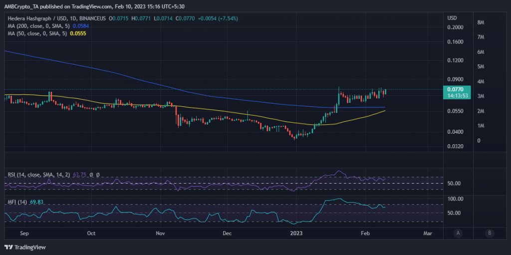 The crypto market has responded to the SEC’s latest push against crypto staking by lending favor to the bears. Most of the top cryptocurrencies were discounted in the last 24 hours. However, Hedera [HBAR] was among the few that somehow evaded this FUD-induced sell pressure.