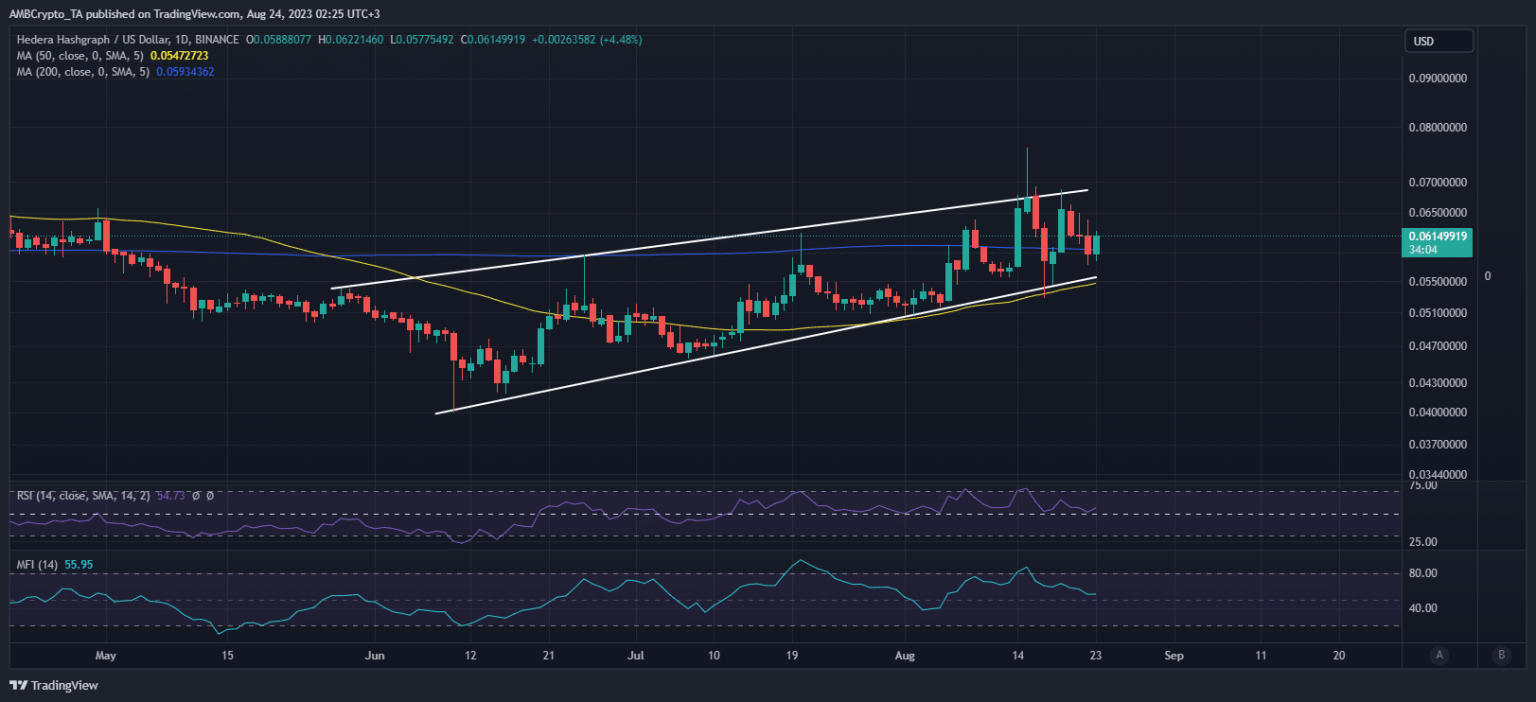 At press time, HBAR was about to wind up the third consecutive month of the aforementioned ascending pattern. Its ability to sustain this trend was called into question after the recent developments. The altcoin recently attempted a bullish breakout in mid-August before returning to the same range.