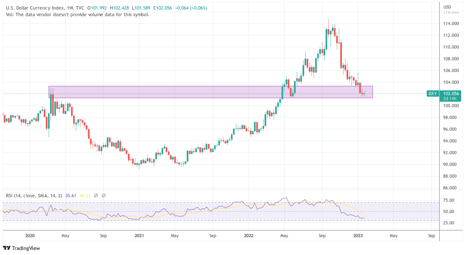 However, the weekly chart of the DXY reveals that the dollar index is still holding above its weekly support at 101, which experts consider an extremely crucial support level.