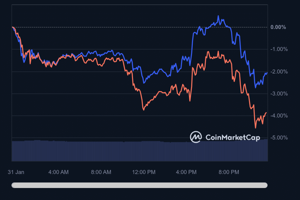 Major cryptocurrencies, including Bitcoin [BTC], and Ethereum [ETH], witnessed a slide after Federal Reserve chair Jerome Powell said he does not expect rate cuts by the next FOMC meeting scheduled for March.