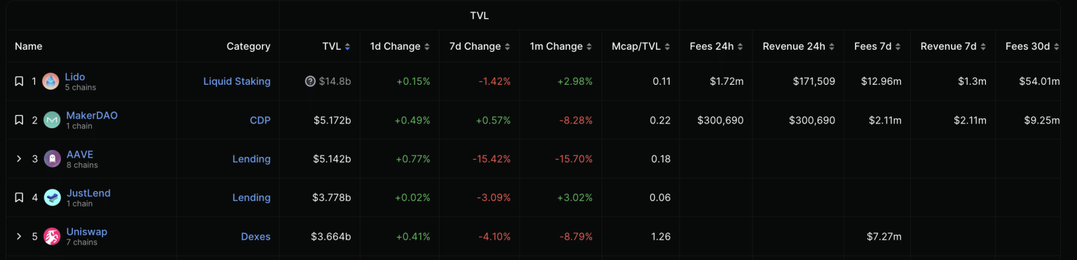 Interestingly, while others recorded declines, MakerDAO [MKR] saw a TVL uptick, albeit minute.