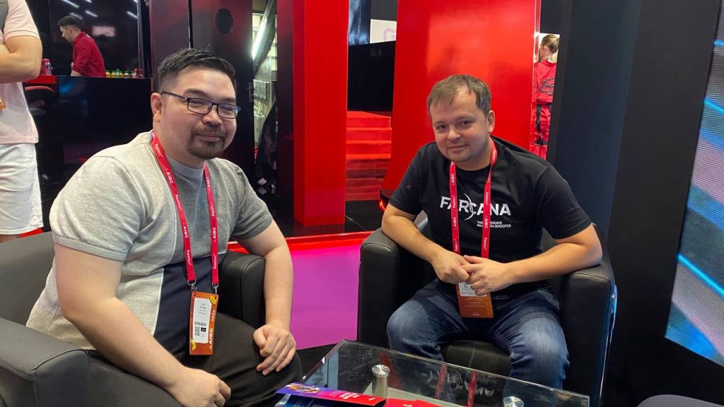 Cointelegraph’s Ezra Reguerra with Farcana Labs’ Dmitry Mikhailov at the AIBC Dubai conference