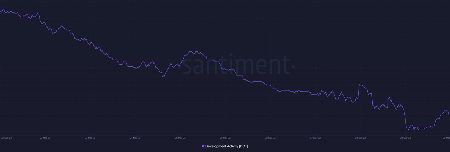 The possibility of a bearish outcome is further backed by the drop in investor consensus as captured by the weighted sentiment. The latter had its weekly peak on 24 March and has since fallen back to its weekly low levels. DOT’s volatility also underscored the resistance expectations further down the road.