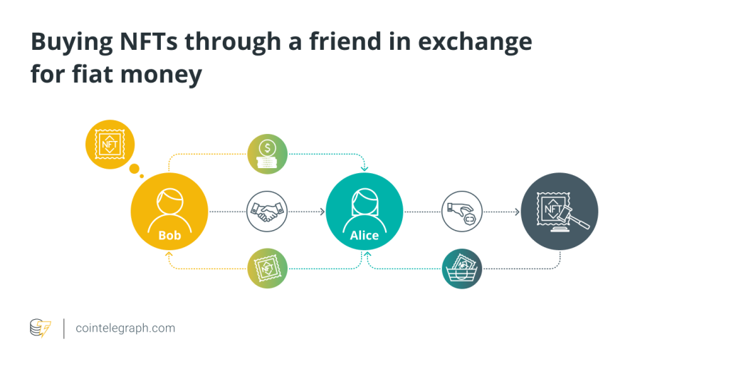 Alice would then use her cryptocurrency to buy the NFT on Bob’s behalf after they had reached an agreement on the terms. Bob would then transfer Alice the agreed-upon sum of money. Alice would then transfer the NFT to Bob’s digital wallet after making the purchase.
