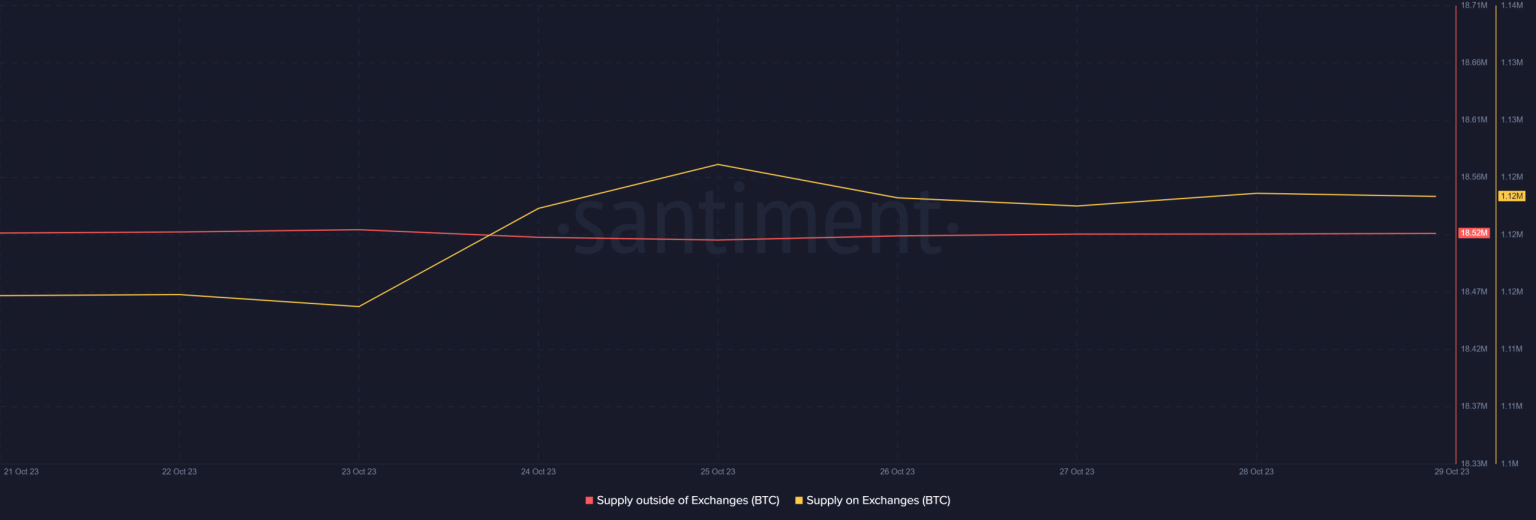 While the whales’ confidence in BTC was high, the border market seemed to have a different opinion. This was evident from the fact that BTC’s Supply on Exchanges went above its supply outside of exchanges.