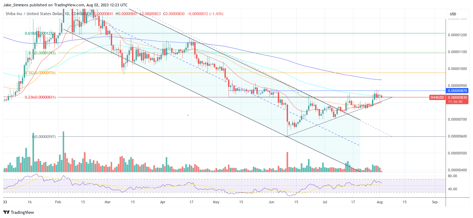 In recent weeks, the meme coin Shiba Inu (SHIB) has shown signs of recuperation, gradually recovering from its yearly low of $0.00000597, reached on June 10. SHIB was following the pawprints of its rival, Dogecoin (DOGE), which recently garnered momentum following a profile update from Elon Musk. As the value of SHIB began to move upward, anticipation around the forthcoming release of Shibarium, a layer 2 solution, also began to ripple through the investor community.