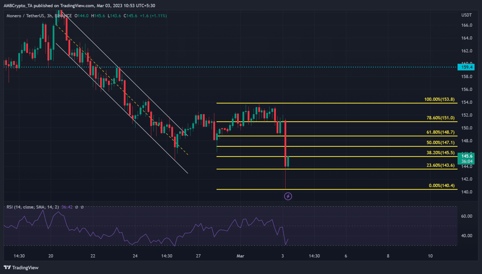 Monero [XMR] dropped to its December 2022 lows of $140, clearing all the gains in the past two months. The retracement followed a sharp plunge of Bitcoin [BTC] to $22,000 amidst the Silvergate bank fallout as its crypto clients like Coinbase suspended business with it.