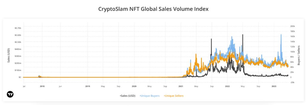 In the midst of a turbulent week for the crypto market, non-fungible token (NFT) sales have shown resilience, experiencing a surge of 7.74% in weekly sales, totaling $181.82 million. Data also reveals that there has been an increase of 41% in NFT buyers over the course of the week, surpassing the number of buyers recorded in the previous week.