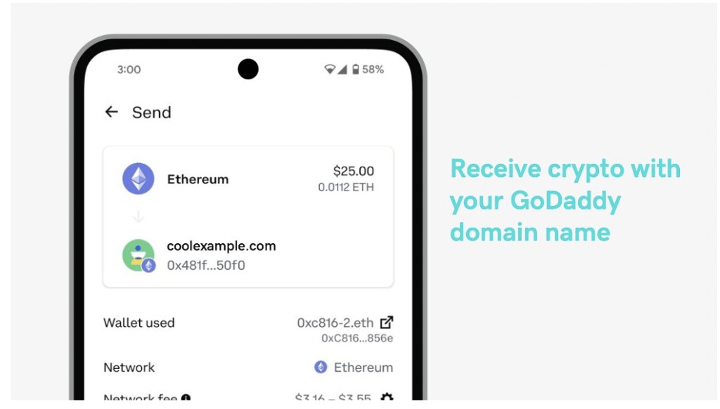 For instance, Nicks explained that the collaboration with ENS lets users link their GoDaddy domain name to ENS and their crypto wallet address, enabling the receipt of crypto payments using their domain name as the wallet address.
