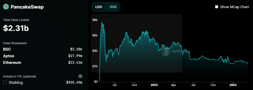 It should be noted here that PancakeSwap’s TVL declined substantially in the last three years. It peaked at around $7.8 billion at the height of the 2021 bull market. In contrast, Uniswap had a $3.23 billion market cap at press time while its peak TVL in 2021 was just over $10 billion.