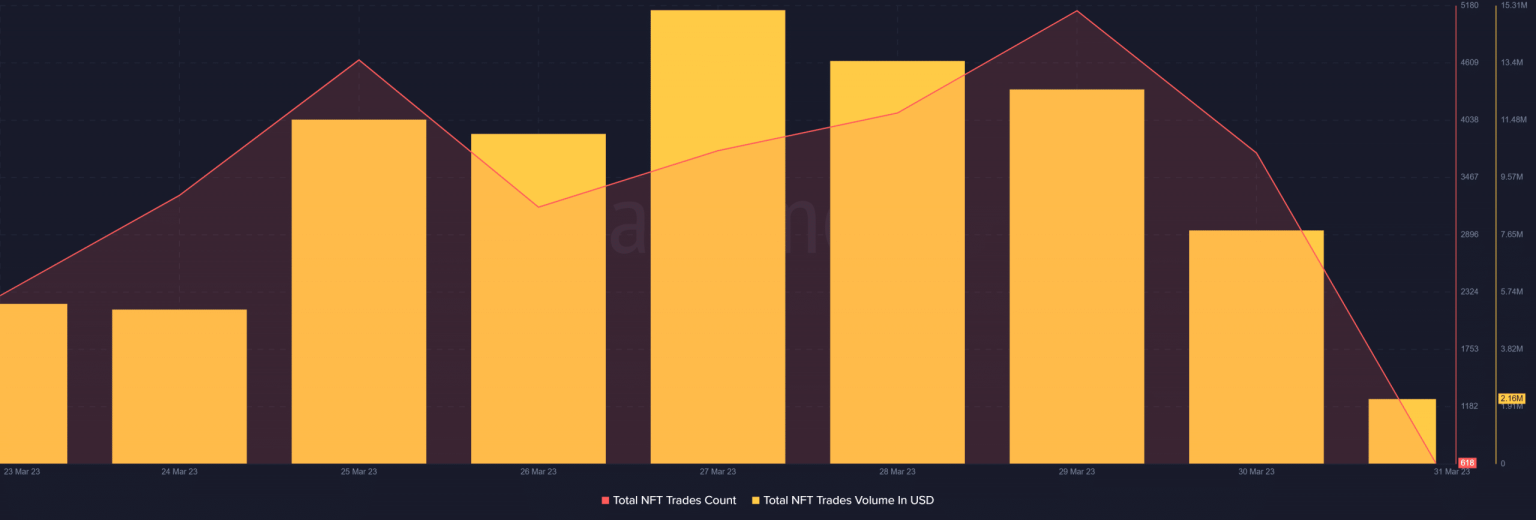 As y00ts continues to migrate fully, several metrics revealed that Polygon’s NFT space was growing considerably. A look at Santiment’s data highlighted that there had been a massive increase in Polygon’s NFT trade count and trade volume in USD.