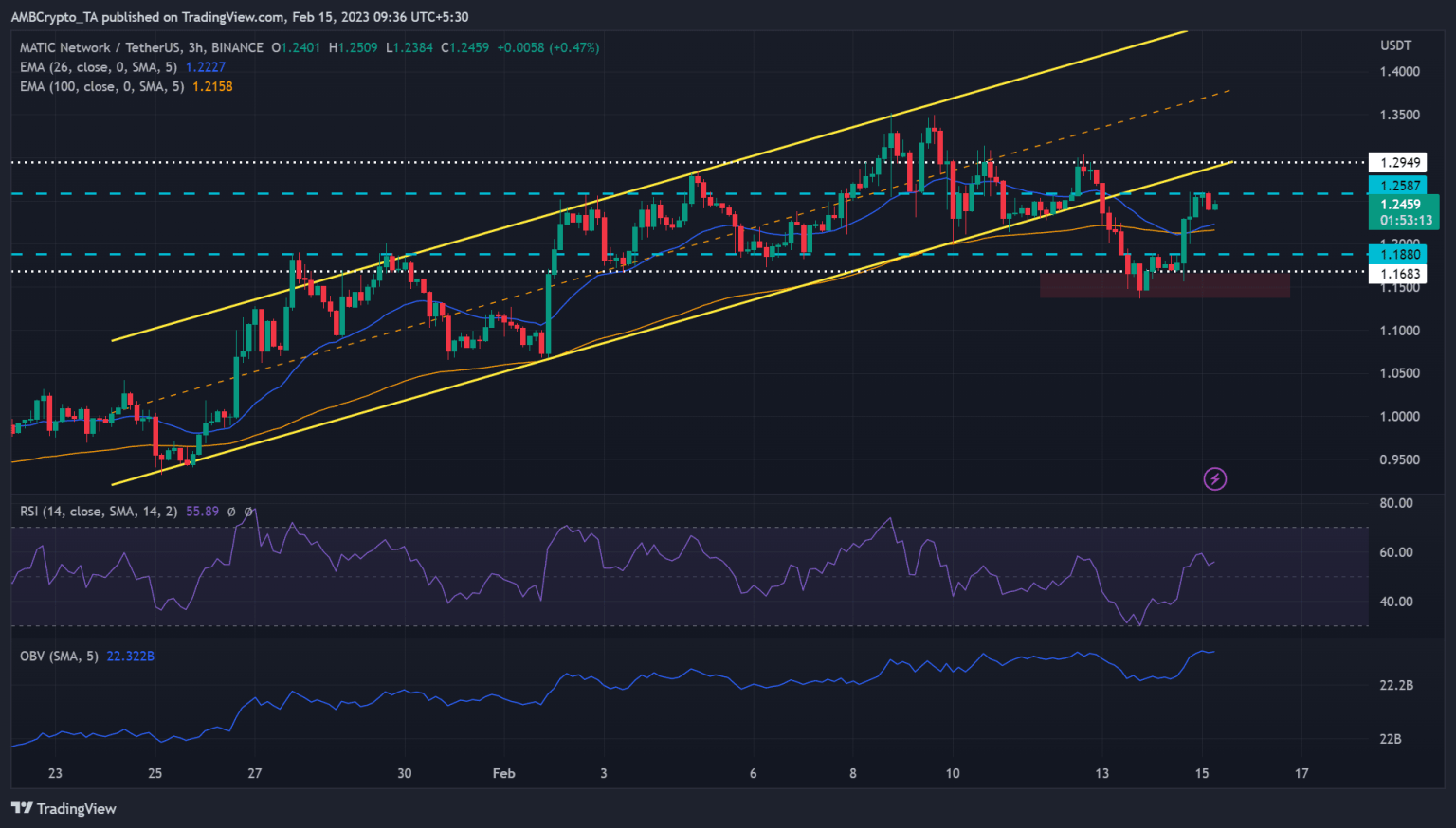 Polygon [MATIC] successfully recovered but faced a hurdle at $1.2587. However, the bulls could overcome the hurdle if Bitcoin [BTC] reaches the 22.25k mark or more.