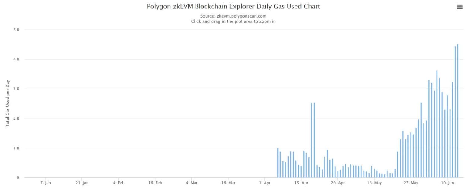 Not only did the rollup’s unique addresses register an uptick, but its daily gas use also reached an all-time high on 4 June. A hike in the metric clearly revealed increased adoption, which looked encouraging for zkEVM’s future.