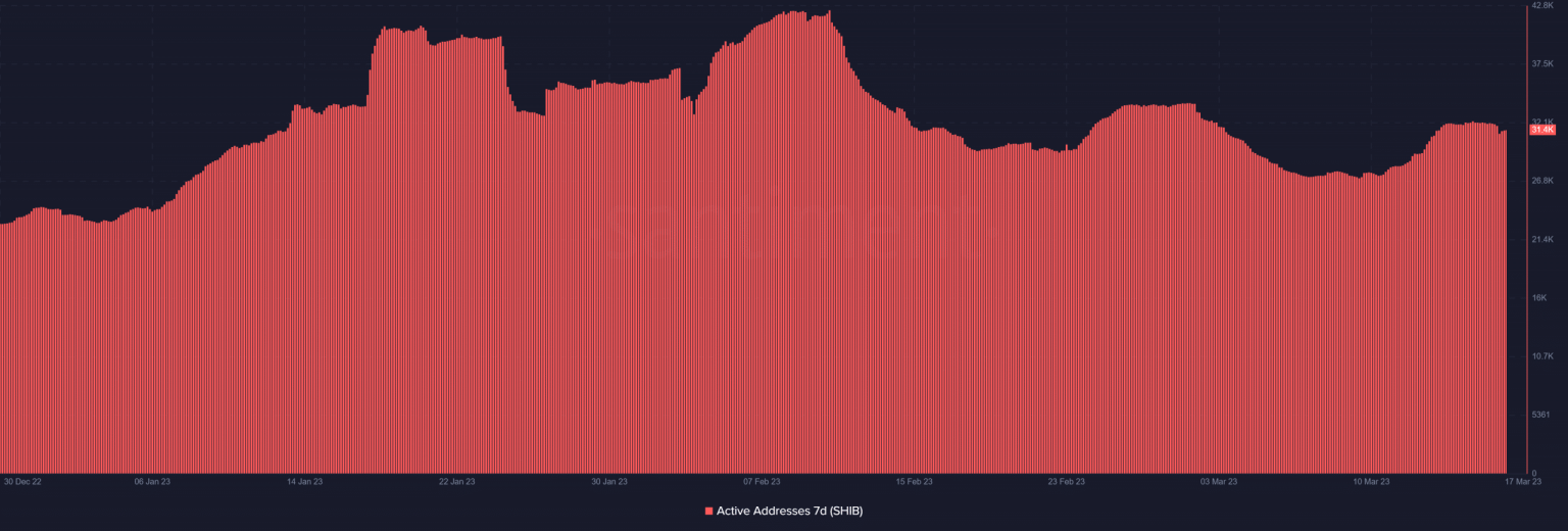 As of this writing, there were approximately 31,000 active SHIB addresses, which showed that it had maintained its previous level of success.