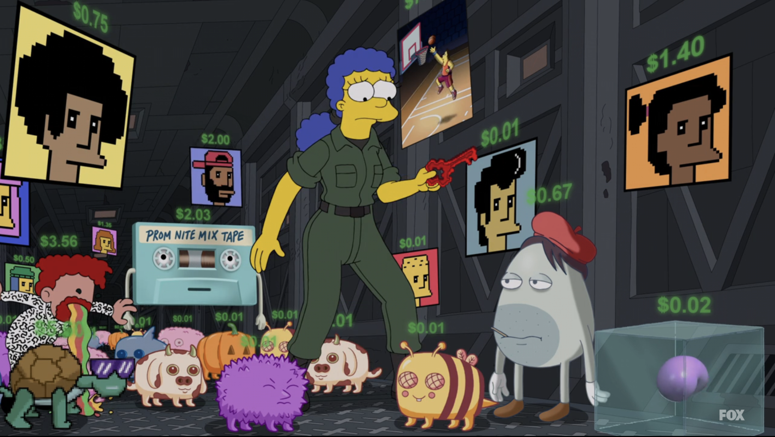 During one segment of the show’s 34th annual Halloween-themed “Treehouse of Horror” anthology series, Homer accidentally mints Bart onto “the blockchain” as an NFT, triggering a daring rescue mission featuring multiple eerily recognizable designs and characters from the NFT ecosystem.